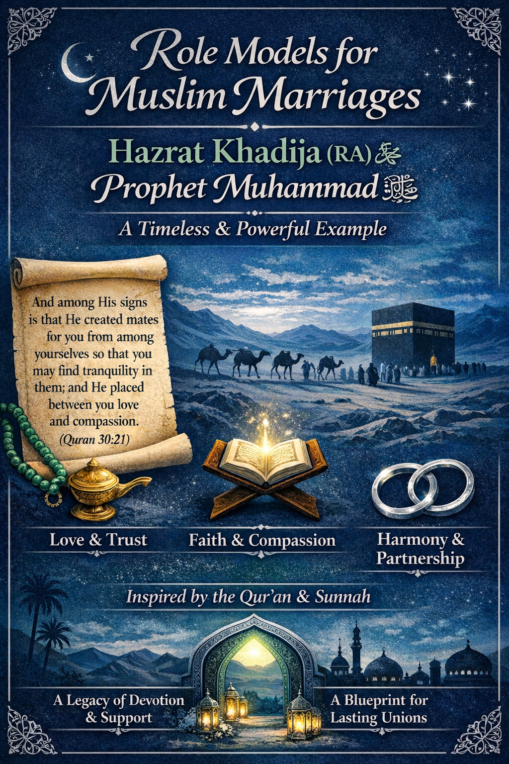 Discover the timeless marriage of Hazrat Khadija (RA) and Prophet Muhammad ﷺ—built on trust, love, women’s agency, and spiritual purpose—offering Muslims a divine blueprint for harmony and faith-centered companionship.
